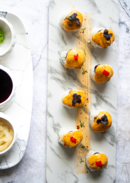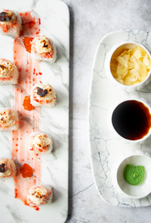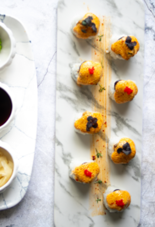 Запечённый ролл с камчатским крабом и гребешком